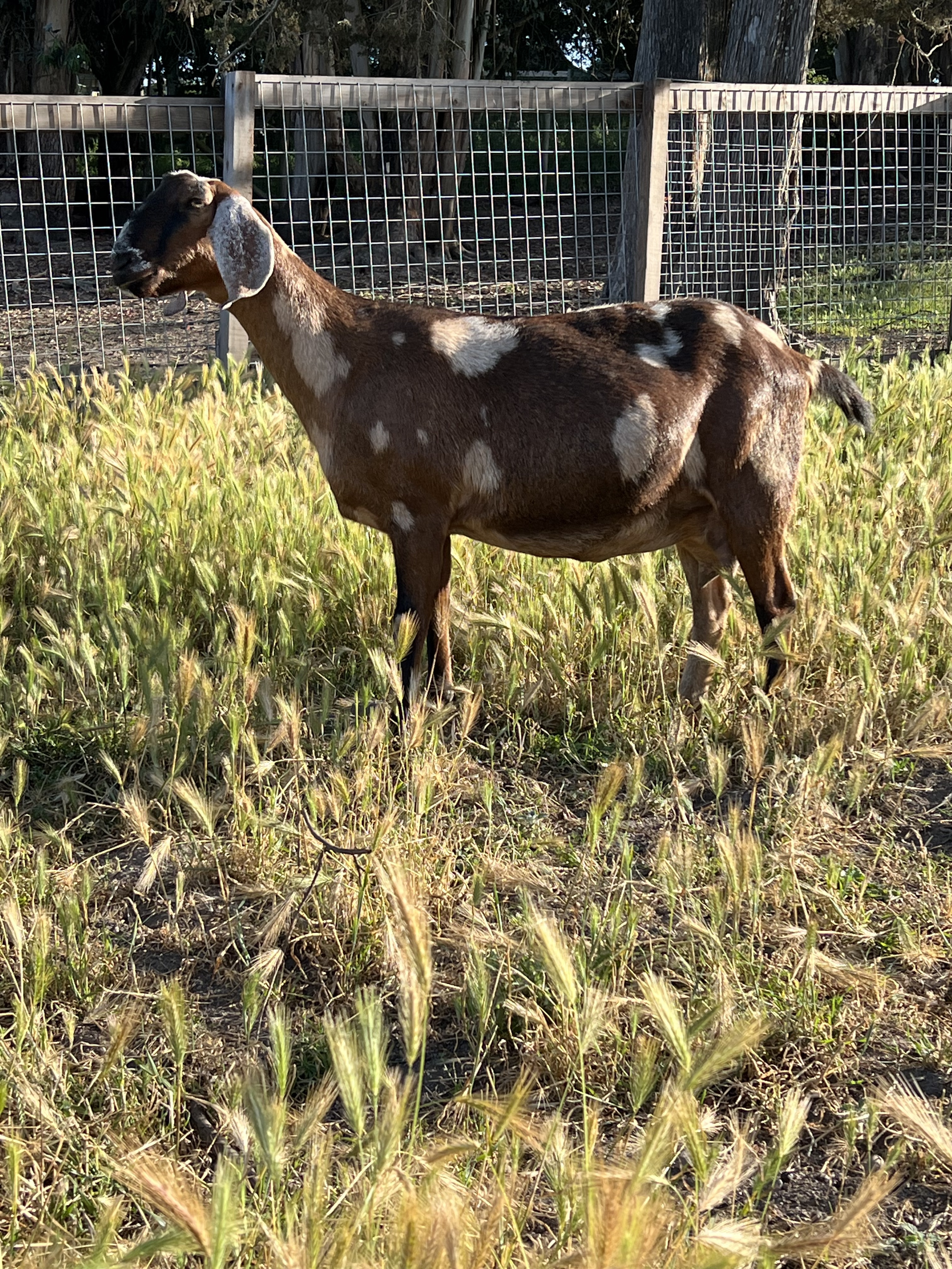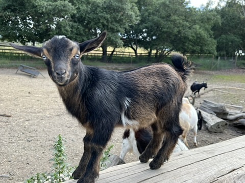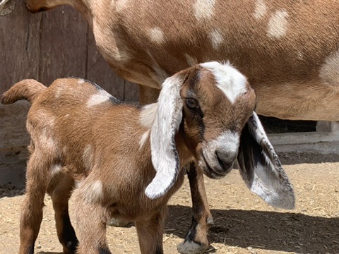 For Sale Spring 2025: Two pet nubian females. These goats are retired from our breeding and milking herd. Tumeric is a light tan goat with some moon spots. She is a very large Nubian. She is 6 and has not taken to breeding the last two years. Equatis is dark brown and has larger tan moonspots and patches. She is 6 year old. These females are not able to be bred and would love a retirement home, where they can graze and be happy pasture pets. Both are socilized and people firendly. They would love to be homed together, but can go sepratly as a companion animal for other goats. Our herd is tested negitive for CAE and CL. Adoption Fee $100 each. Photo Below.